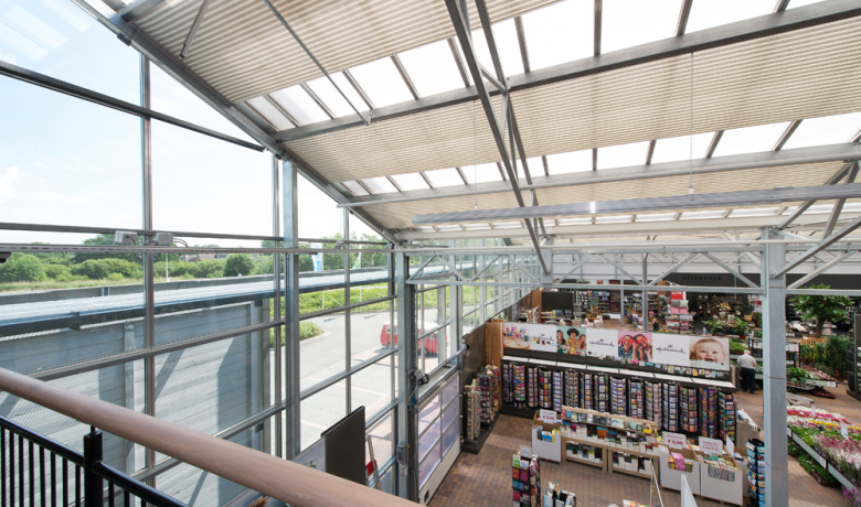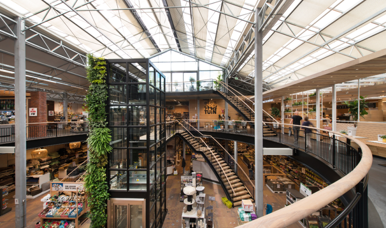 Ontwerp van het pand is van Architectenbureau Breddels, dat samen met retail-specialist SVT tekende voor de innovatieve inrichting, waar klanten zich laten inspireren tot nóg meer creativiteit in groen. Zie ook ons blogartikel over Intratuin Deventer.